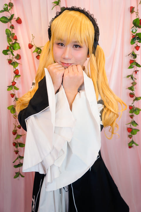 金髪ツインテールできゅるりとかわいい ドール風ロリィタちゃんへ変身のけいちゃん(*´ω`*)! 白黒のドレスに金髪ヘアーがとっても映えますね!