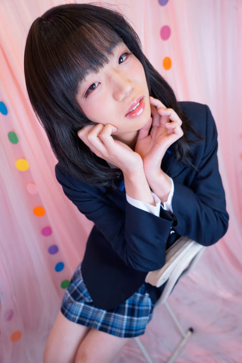 ミニスカ女子校生に変身のはまちちゃん! 優しい表情がとってもキュート! 自然な黒髪が清楚な雰囲気をかもしだしてますね( *´艸`)☆